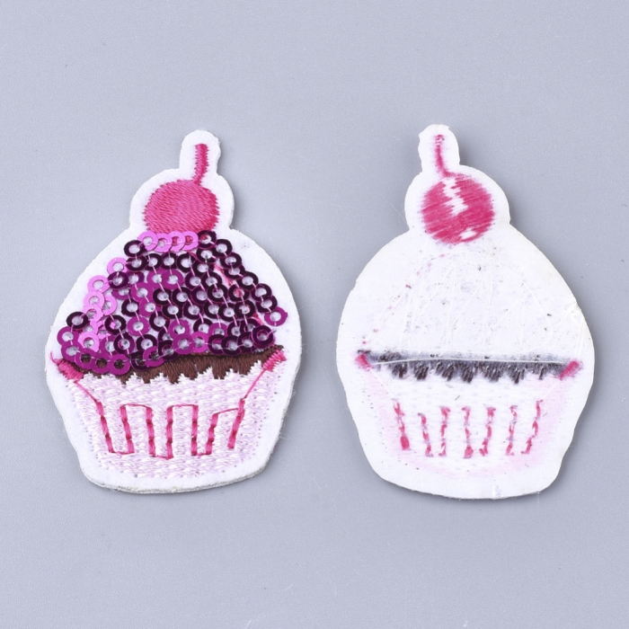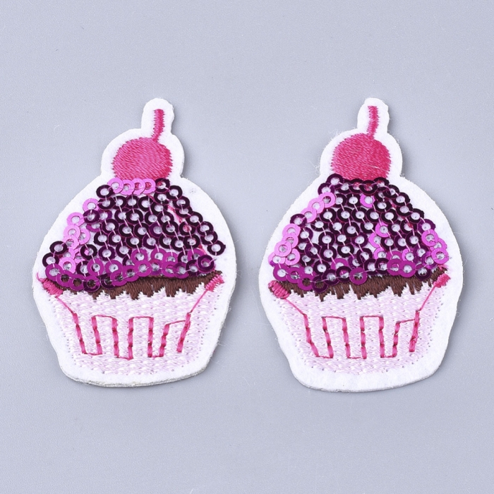 Нашивка на Одежду, Вышитая нашивка, Термонаклейка, Аппликация, Торт, Пайетки, Цвет: Пурпурный, Размер: 51x33x1.5мм, (УТ100023973)