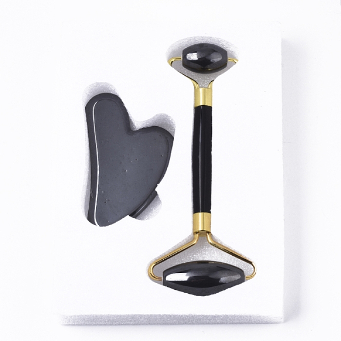 Набор Массажер для Лица, Синтетический Магнитный Гематит и Латунь, Скребок Гуа-ша, Черный, Роллер 14.6см, Гуа-ша 8.1х0.8мм, 2шт/упак, (УТ100024474) - ᐈ заказывайте в Москве оптом и в розницу ✅Скидки ✅Акции ✅Распродажи ᐈ доставка по всей России ᐈ Интернет-магазин Мир Бусин