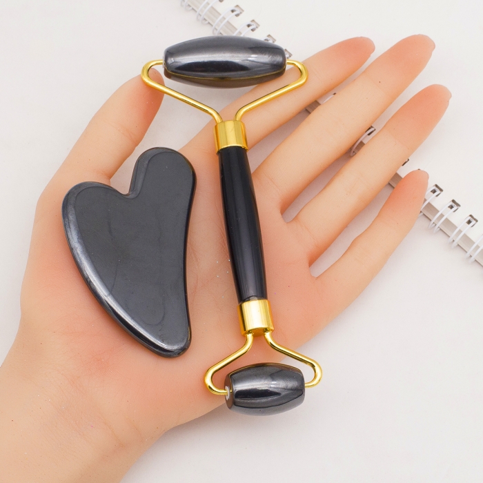 Набор Инструмент для Массажа, Массажер для Лица из Синтетического Магнитного Гематита и Латуни, Скребок для лица Гуа-ша и Роллер