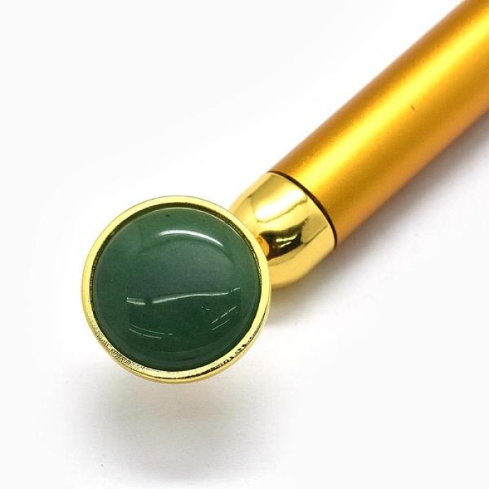 Электрический Массажер для лица, Натуральный Зеленый  Авантюрин, Цвет: Зеленый, Цвет металла: Золото, Размер: 155x16мм, (УТ100024483)