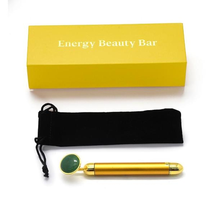 Электрический Массажер для лица, Натуральный Зеленый Авантюрин, Цвет: Зеленый, Цвет металла: Золото, Размер: 155x16мм, (УТ100024483)