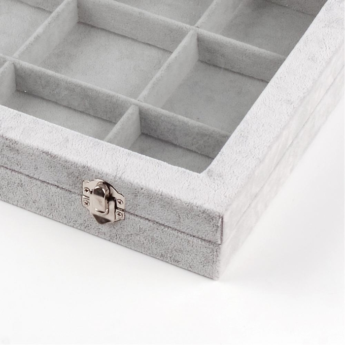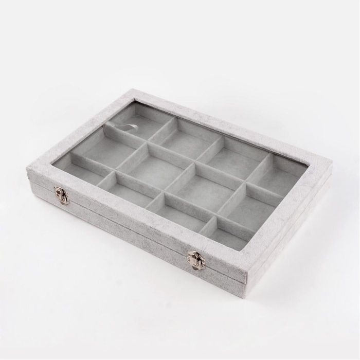 Классическая Шкатулка для Украшений, Прямоугольная, Бархатная, со Стеклянной Крышкой, Цвет: Серый, Размер: 24х35х4.5см, 12 Ячеек, (УТ100025069) - ᐈ заказывайте в Москве оптом и в розницу ✅Скидки ✅Акции ✅Распродажи ᐈ доставка по всей России ᐈ Интернет-магазин Мир Бусин