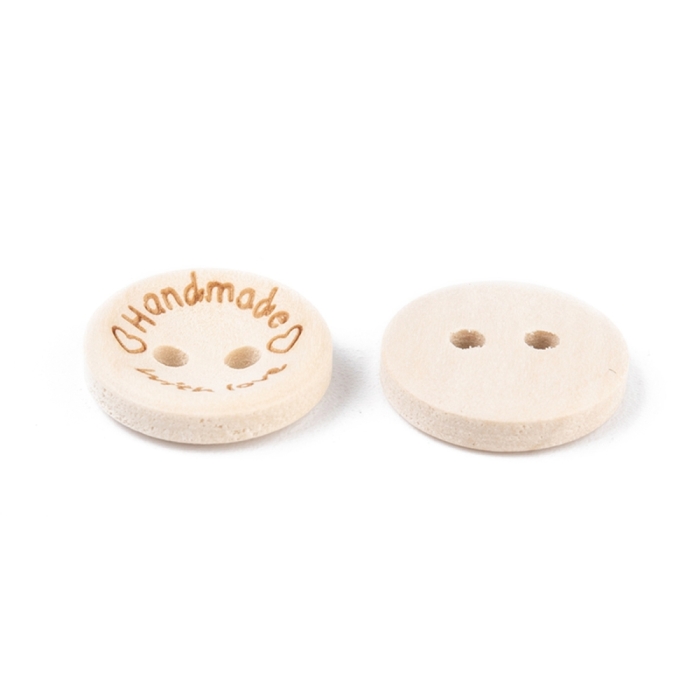 Пуговицы Деревянные на 2-отверстия Круглые со словом Handmade, Бежевый, 15х3мм, Отверстие 2мм, (УТ100025199) - ᐈ заказывайте в Москве оптом и в розницу ✅Скидки ✅Акции ✅Распродажи ᐈ доставка по всей России ᐈ Интернет-магазин Мир Бусин