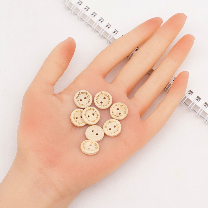Декоративные пуговицы из натурального дерева с гравировкой "Handmade" станут тёплым акцентом в любом творческом проекте. Лёгкие, прочные и экологичные, они отлично подходят для изделий ручной работы в стиле рустик, эко, прованс и бохо.