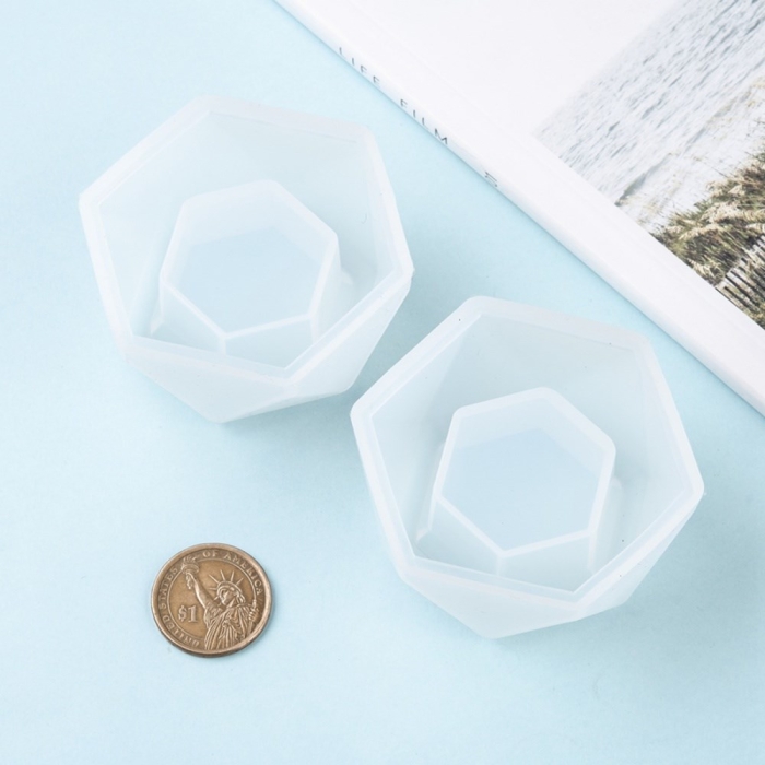 Силиконовая форма для изготовления изделий из эпоксидной смолы, из УФ смолы в форме шестиугольника.