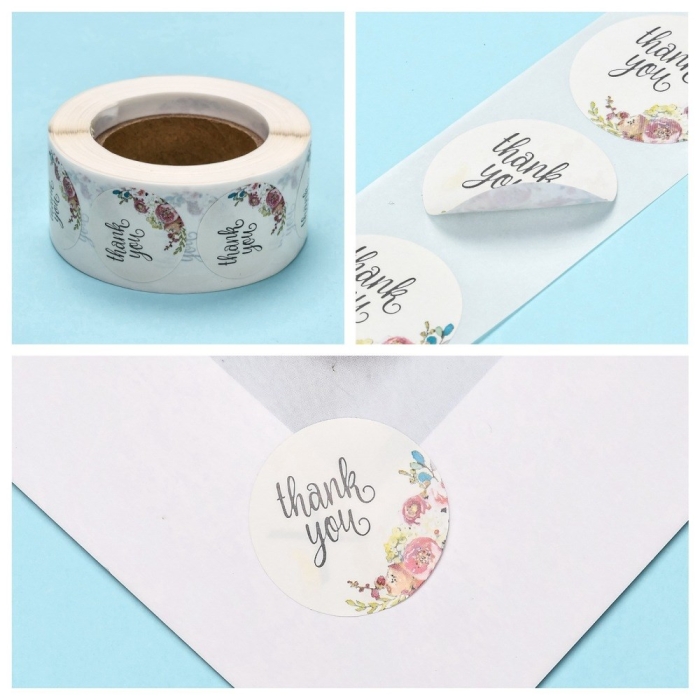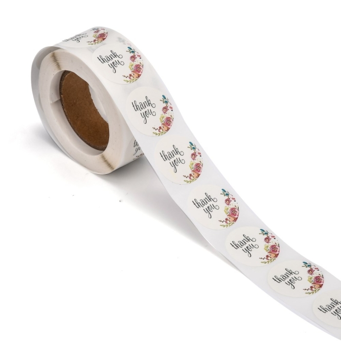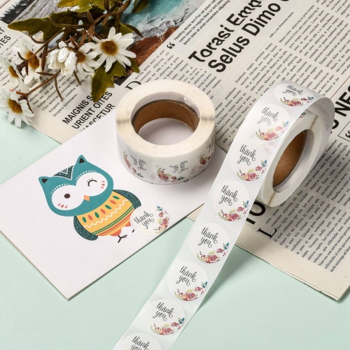 Самоклеющиеся Стикеры, Наклейки, Этикетки на Подарочные Бирки, Упаковку из Крафт-бумаги, Цвет: Разноцветный, со Словом "Thank You" (Спасибо ).