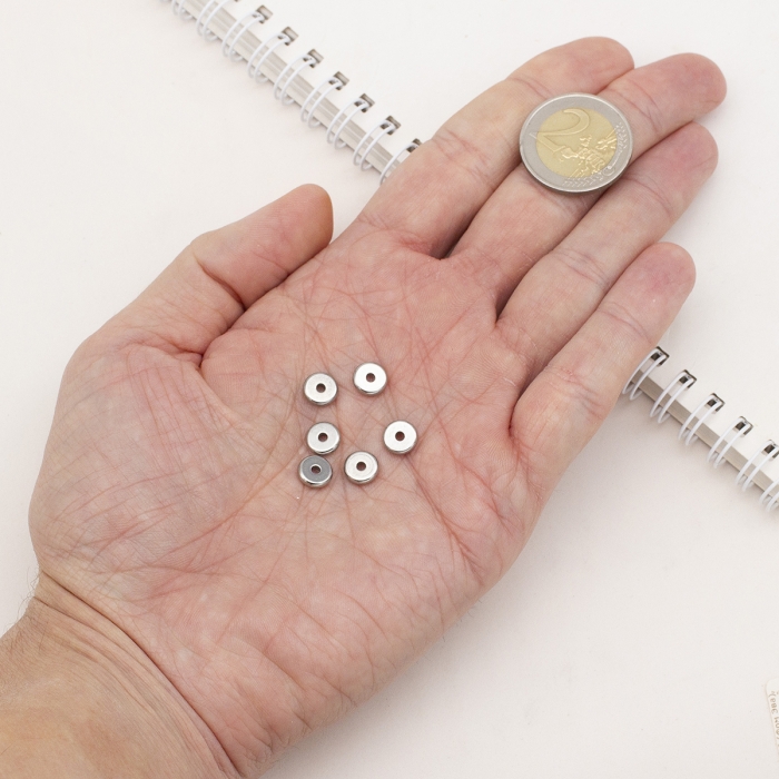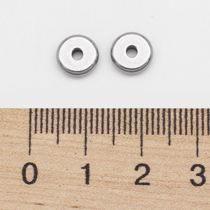 Бусины-Разделители, Нержавеющая Сталь, Поские Круглые, Размер: 8x2мм, Отверстие 2мм, (УТ100026632)