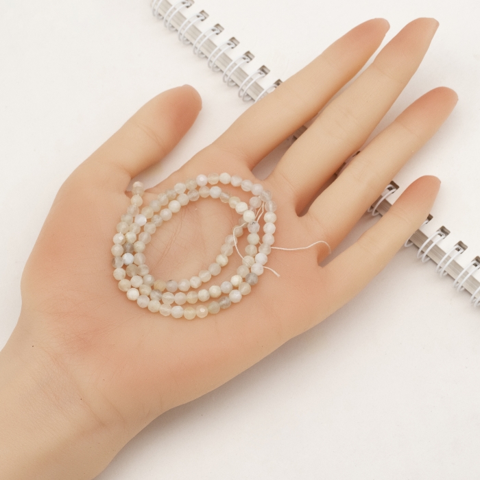 Бусины Натуральный Лунный Камень, Круглые Гранен, Цвет: Белый, Размер: 4мм, Отверстие: 0.8мм, около 88шт/38см/нить, (УТ100026754) - ᐈ заказывайте в Москве оптом и в розницу ✅Скидки ✅Акции ✅Распродажи ᐈ доставка по всей России ᐈ Интернет-магазин Мир Бусин