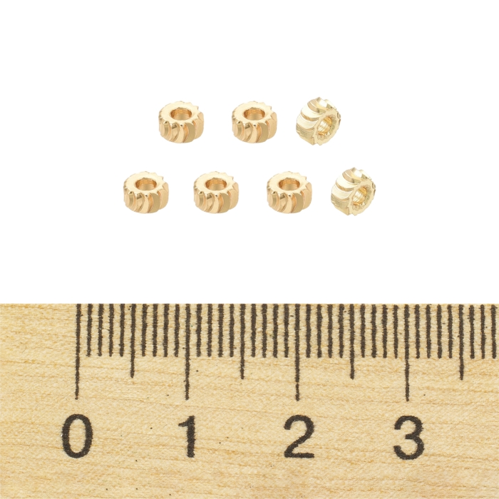 Бусины, Латунь, Стойкое Покрытие, Рондель, Покрытие Золото 18К, 4х2мм, Отверстие 1.6мм, (УТ100027323) - ᐈ заказывайте в Москве оптом и в розницу ✅Скидки ✅Акции ✅Распродажи ᐈ доставка по всей России ᐈ Интернет-магазин Мир Бусин