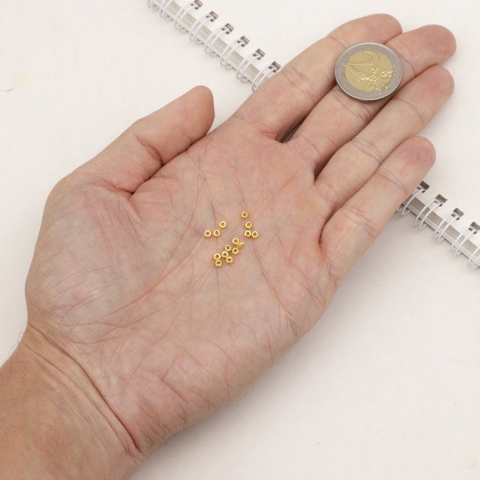 Бусины, Латунь, Стойкое Покрытие, Рондель, Покрытие Золото 18К, 4х2мм, Отверстие 1.6мм, (УТ100027323)