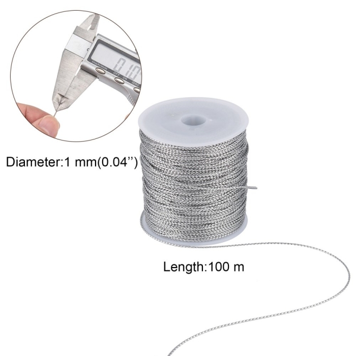 Шнур Декоративный Металлизированный 1.0мм/100м, Плетеный, Серебристый, 1мм, около 100м/катушка, (УТ100027603)