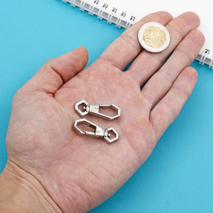 Поворотный механизм карабина-лобстера обеспечивает дополнительную свободу движения деталей, предотвращая скручивание цепочек и шнурков. Такая застёжка сочетает в себе эстетичный внешний вид и высокую функциональность, что делает её популярным выбором как для профессионалов, так и для любителей рукоделия.