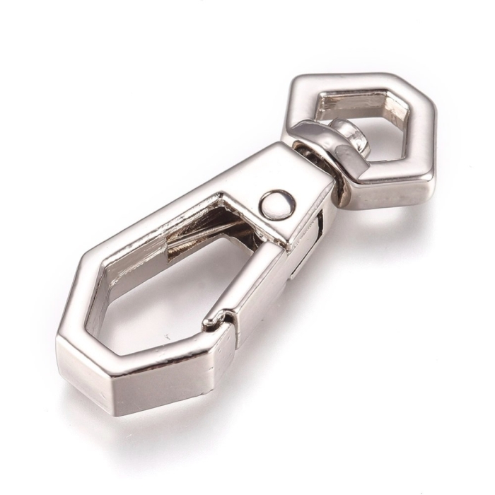 Застёжка поворотный карабин-лобстер из бижутерного сплава — это универсальная и надёжная фурнитура, широко используемая в создании и ремонте аксессуаров. Изделие выполнено из прочного бижутерного сплава, устойчивого к коррозии, что обеспечивает долговечность и надёжность использования. Карабин оснащён поворотным механизмом, позволяющим легко менять положение крепления, что делает его удобным и практичным в повседневной эксплуатации. 360-градусная поворотная конструкция может эффективно предотвратить запутывание застежки. Гибкая пружина позволяет легко открывать и надежно закрывать застежку.