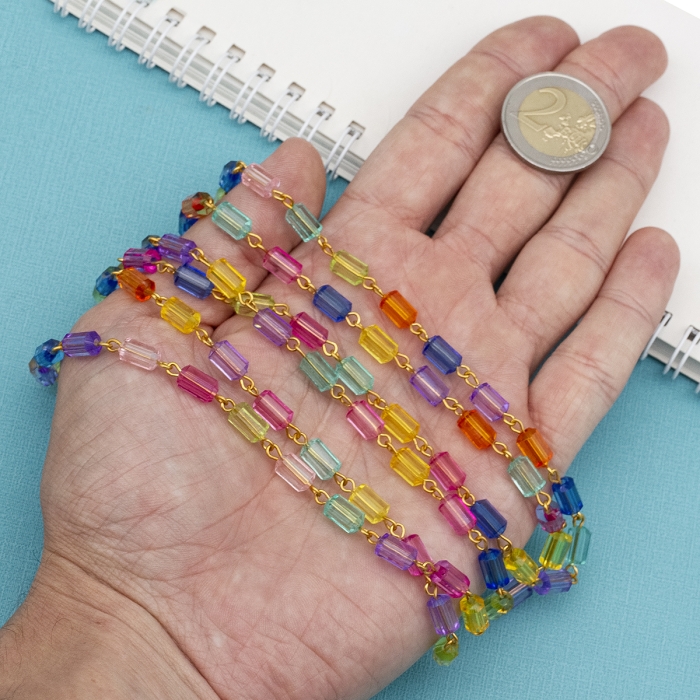 Цепь с Цветными Акриловыми Бусинами, Ручная Работа, Бусины 5х8.5-9мм, 1м/нить, (УТ100028393)