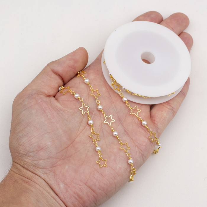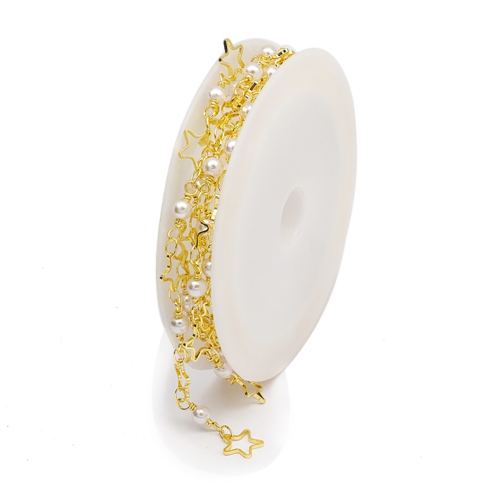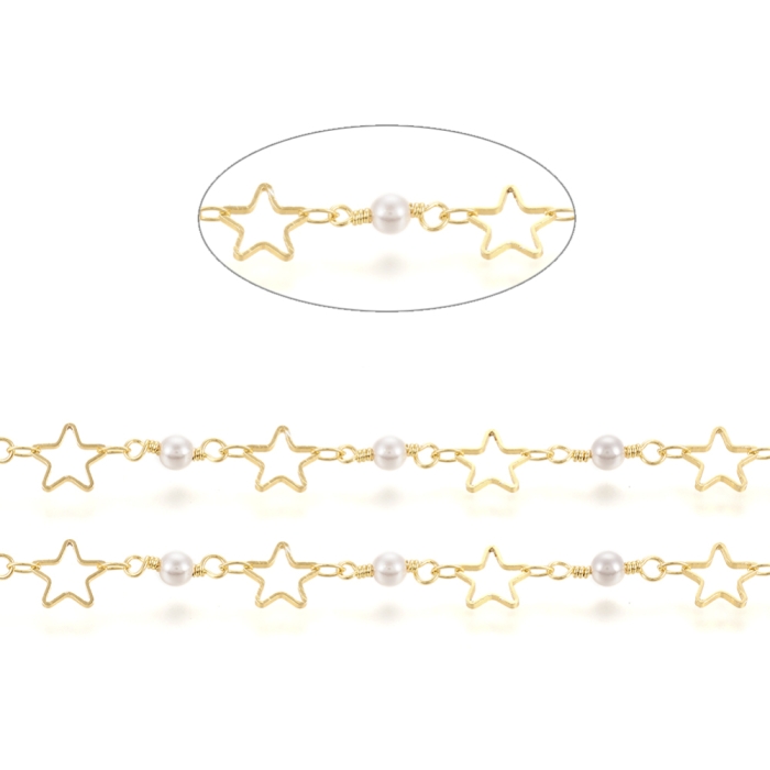 Цепь с Бусинами Ручная Работа, Латунь и Стекло, Звезда, Стойкое Покрытие Золото 18К, Звено 4х2х0.3мм, Звезда 8х8х1мм, Бусины 13х4мм, 1м (УТ100028429) - ᐈ заказывайте в Москве оптом и в розницу ✅Скидки ✅Акции ✅Распродажи ᐈ доставка по всей России ᐈ Интернет-магазин Мир Бусин