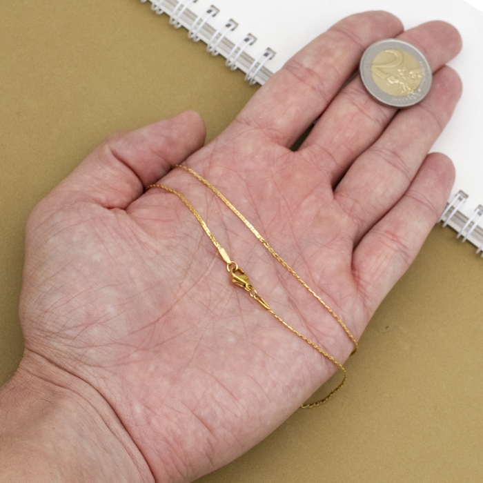 Ожерелье Цепь Нержавеющая сталь Застежка Карабин-лобстер, Цвет: Золото, Длина 45см, Звено 1.2х0.4мм, (УТ100028557) - ᐈ заказывайте в Москве оптом и в розницу ✅Скидки ✅Акции ✅Распродажи ᐈ доставка по всей России ᐈ Интернет-магазин Мир Бусин