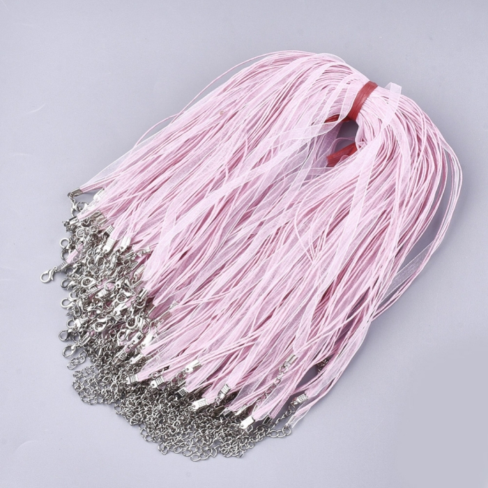 Основа для Ожерелья, 2 Хлопковых Вощеных Шнура и Лента Органза, Застежка и Цепочка, Цвет: Розовый, Длина 45см, Шнур 1мм, Лента 7мм, (УТ100028591) - ᐈ заказывайте в Москве оптом и в розницу ✅Скидки ✅Акции ✅Распродажи ᐈ доставка по всей России ᐈ Интернет-магазин Мир Бусин