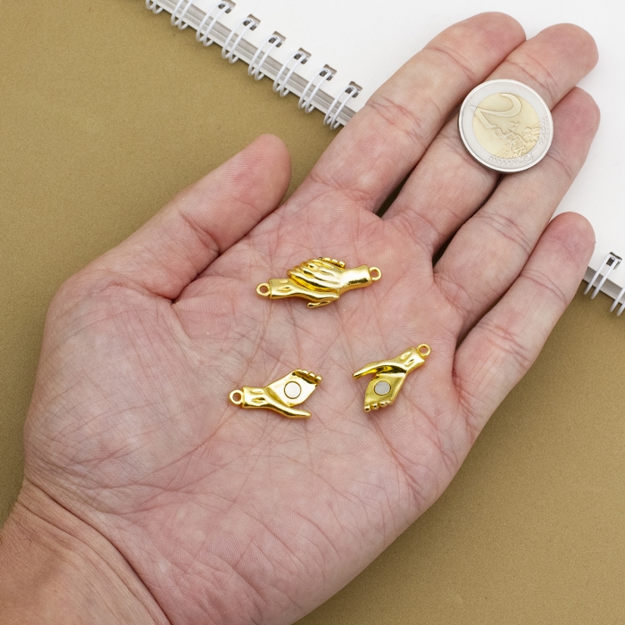 Застежка Магнитная, Сплав, Ладони, Цвет: Золото, Размер: 24.5х13х5мм, Отв. 1.8мм, (УТ100028691) - ᐈ заказывайте в Москве оптом и в розницу ✅Скидки ✅Акции ✅Распродажи ᐈ доставка по всей России ᐈ Интернет-магазин Мир Бусин