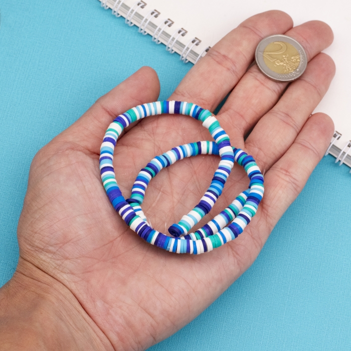 Плоские круглые бусины heishi ручной работы из полимерной глины - это отличный выбор для создания легких, летних или пляжных украшений, а также для детской бижутерии. Они могут быть использованы для создания ожерелий, браслетов, сережек и других украшений, добавив вашему образу нотку непринужденности и веселья. Эти бусины также можно комбинировать с металлическими украшениями и жемчугом, создавая уникальные комбинации. Хотя бусины могут немного отличаться по форме и размеру, именно это делает каждое изделие уникальным и особенным.