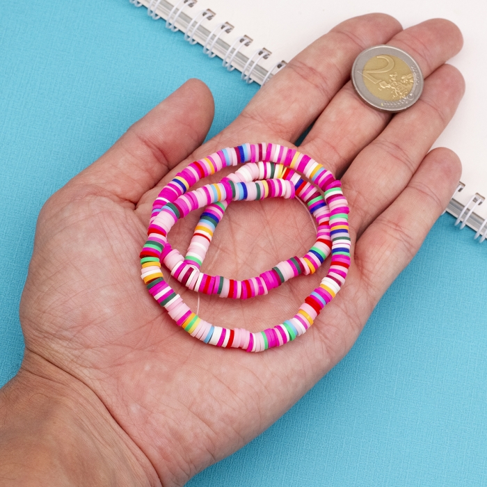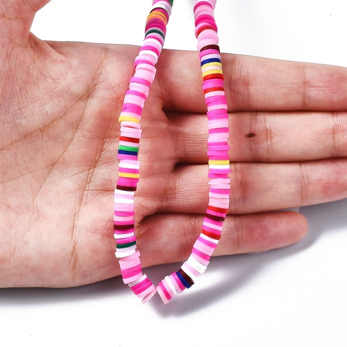 Плоские круглые бусины heishi ручной работы из полимерной глины - это отличный выбор для создания легких, летних или пляжных украшений, а также для детской бижутерии. Они могут быть использованы для создания ожерелий, браслетов, сережек и других украшений, добавив вашему образу нотку непринужденности и веселья. Эти бусины также можно комбинировать с металлическими украшениями и жемчугом, создавая уникальные комбинации. Хотя бусины могут немного отличаться по форме и размеру, именно это делает каждое изделие уникальным и особенным.