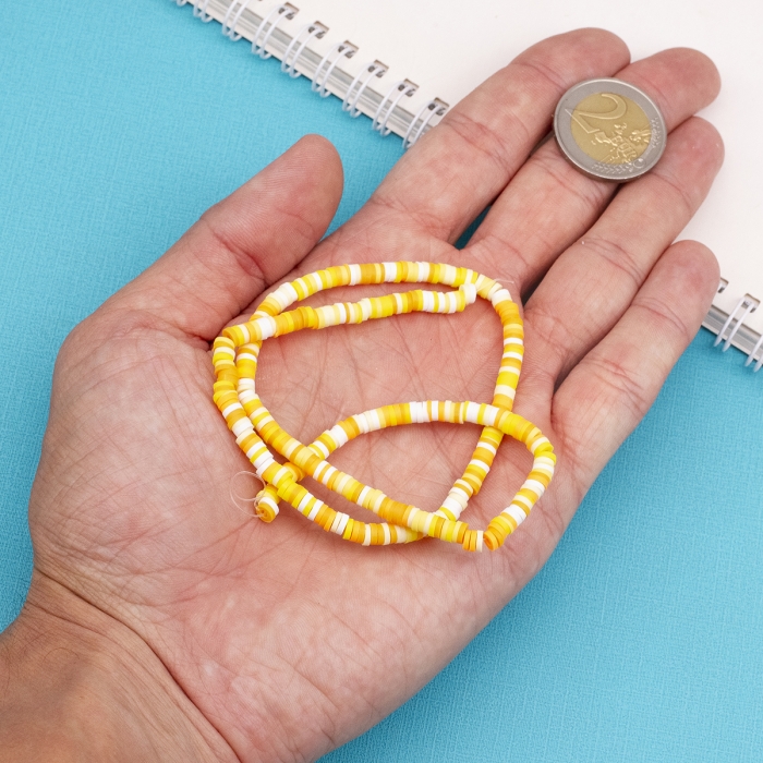 Плоские круглые бусины - heishi (диски) ручной работы из полимерной глины (пластики). Эти бусины отлично подойдут для легких летних (пляжных) украшений, а также для детской бижутерии. Их можно комбинировать с металлическими украшениями и жемчугом.
