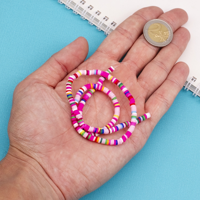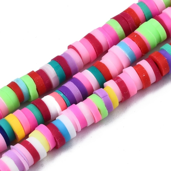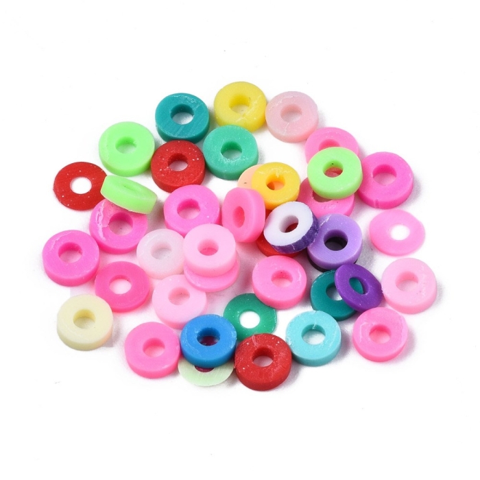 Плоские круглые бусины - heishi (диски) ручной работы из полимерной глины (пластики). Эти бусины отлично подойдут для легких летних (пляжных) украшений, а также для детской бижутерии. Их можно комбинировать с металлическими украшениями и жемчугом.