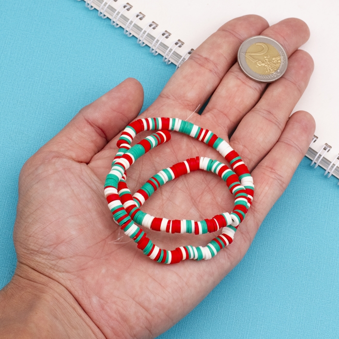 Плоские круглые бусины - heishi (диски) ручной работы из полимерной глины (пластики). Эти бусины отлично подойдут для легких летних (пляжных) украшений, а также для детской бижутерии. Их можно комбинировать с металлическими украшениями и жемчугом.