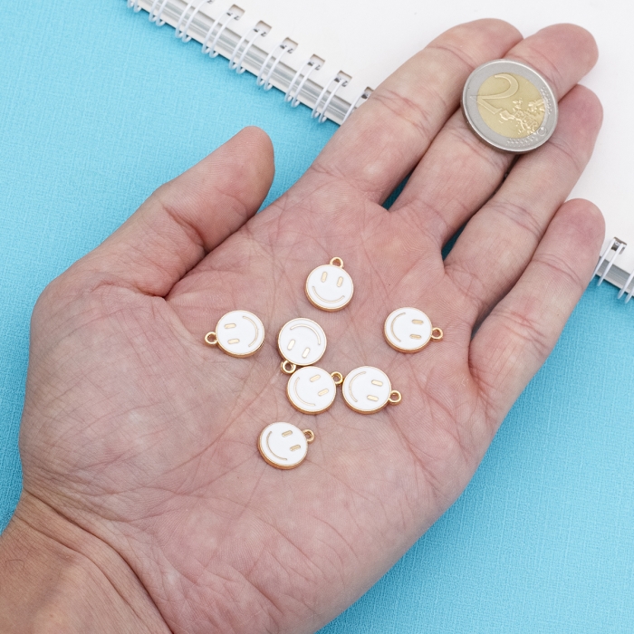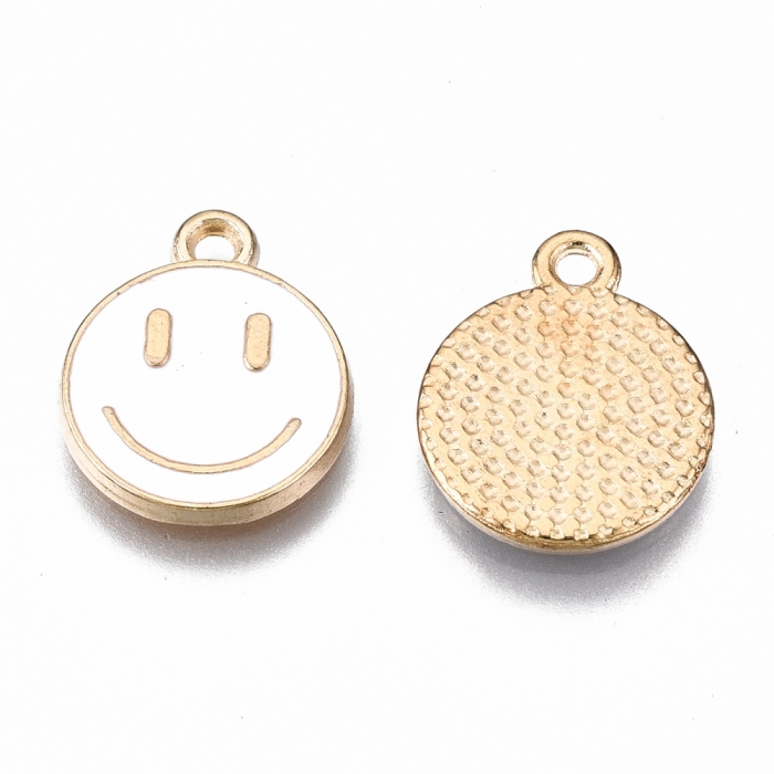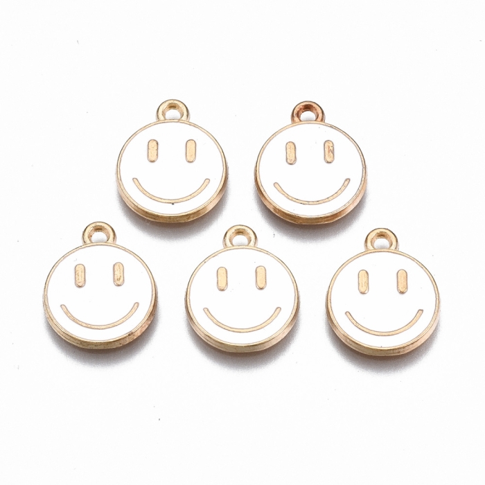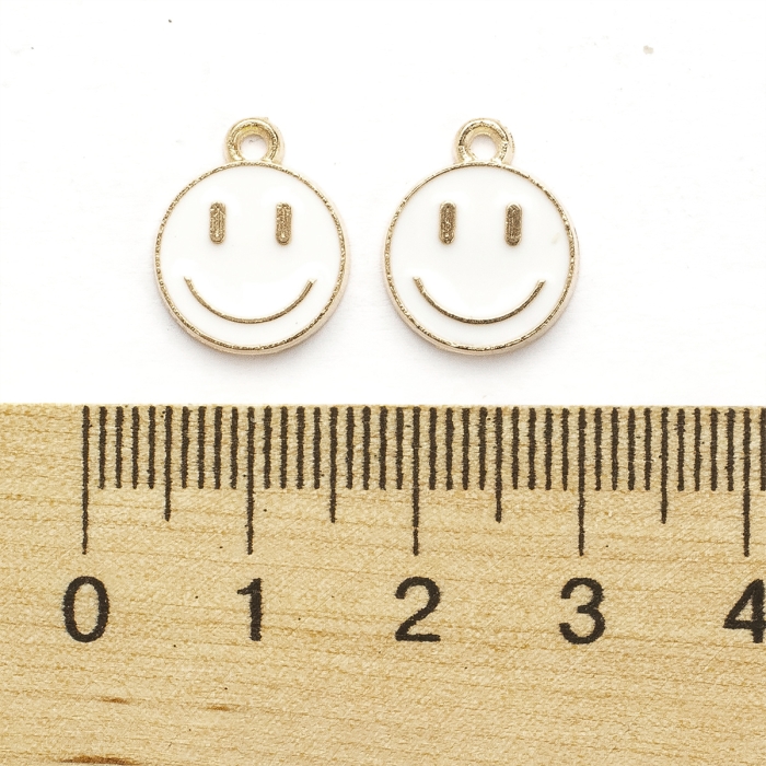 Подвески Смайл, Сплав и Эмаль, Цвет: Белый, Цвет Металла: Розовое Золото, Размер: 14.5х12х1.5мм, Отверстие: 1.5мм, (УТ100029044) - ᐈ заказывайте в Москве оптом и в розницу ✅Скидки ✅Акции ✅Распродажи ᐈ доставка по всей России ᐈ Интернет-магазин Мир Бусин