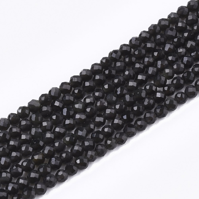 Бусины Натуральный Черный Обсидиан, на нитях, Круглые, Граненые, Размер: 3мм, Отверстие 0.8мм, около 132шт/36см/нить, (УТ100029115) - ᐈ заказывайте в Москве оптом и в розницу ✅Скидки ✅Акции ✅Распродажи ᐈ доставка по всей России ᐈ Интернет-магазин Мир Бусин