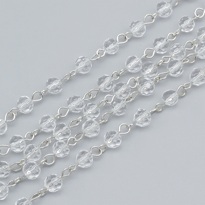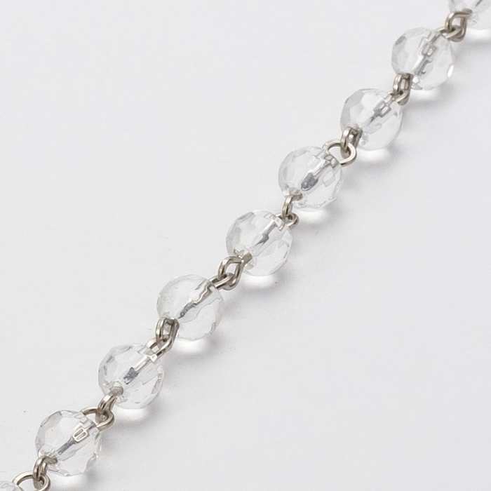 Цепь Железная с Бусинами Стекло, Круглые, Граненые, Ручная Работа, Непаянная, Цвет Бусин: Бесцветный.