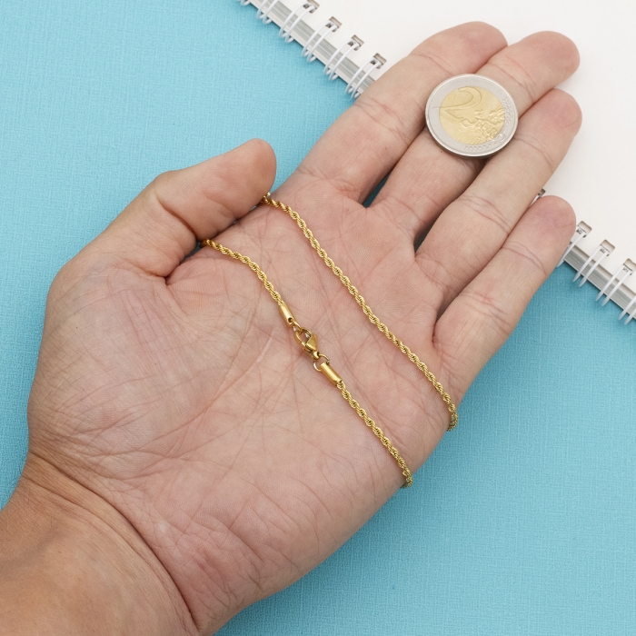Ожерелье Цепь Веревка, Нержавеющая Сталь с Застежкой Карабин-лобстер, Покрытие Золото 18К, Длина 45см, Ширина 2мм, (УТ100029413) - ᐈ заказывайте в Москве оптом и в розницу ✅Скидки ✅Акции ✅Распродажи ᐈ доставка по всей России ᐈ Интернет-магазин Мир Бусин
