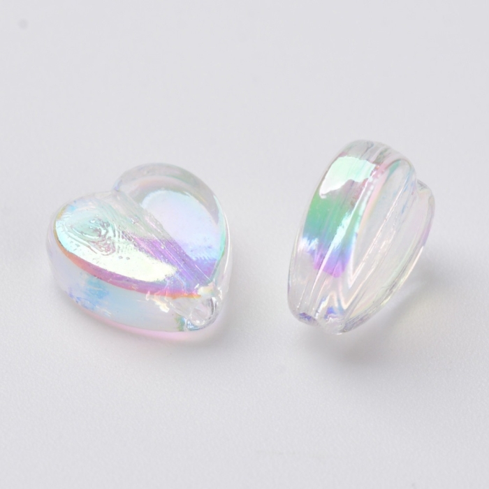 Бусины Акриловые Сердце Прозрачные, АВ-Цвет