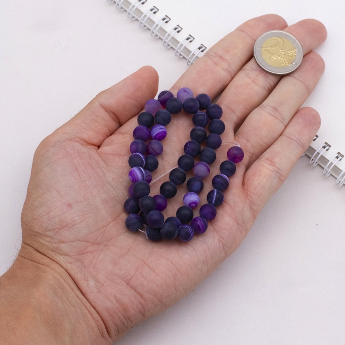 Круглые бусины выполнены из натурального полосатого агата класса А. Этот сорт отличается высоким качеством, минимальным количеством дефектов и выразительными природными узорами.Благодаря технологии окрашивание и термообработки камней — процедуры, направленные на улучшение цвета и внешнего вида. Окрашивание придаёт более насыщенные оттенки, а термообработка усиливает природный цвет, сохраняя текстуру и блеск натурального минерала. Агат традиционно считается камнем гармонии, защиты и внутреннего равновесия. Агат традиционно считается камнем гармонии, защиты и внутреннего равновесия. Он помогает снизить стресс, укрепляет эмоциональную устойчивость, развивает интуицию и способствует обретению уверенности в себе.