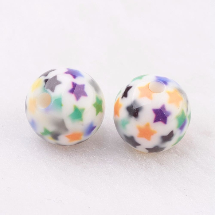 Бусины Смола, Круглые, Окрашенные со Звездным Рисунком, Цвет: Разноцветный, 10мм, Отверстие 2мм, 10шт/упаковка, (УТ100029525)