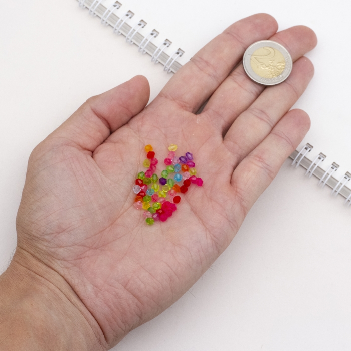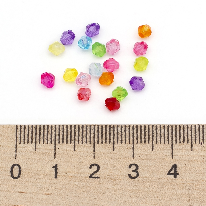 Бусины Акрил Биконус Прозрачные Граненые, Микс, 4х4мм, Отверстие 1.5мм, около 800шт/25г, (УТ100029539) - ᐈ заказывайте в Москве оптом и в розницу ✅Скидки ✅Акции ✅Распродажи ᐈ доставка по всей России ᐈ Интернет-магазин Мир Бусин