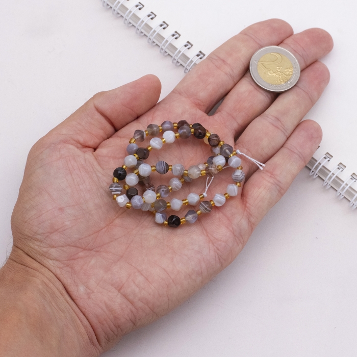 Бусины Натуральный Агат Ботсвана, Неокрашенные, На нитях, Шестигранные. Страна происхождения камня Африка.