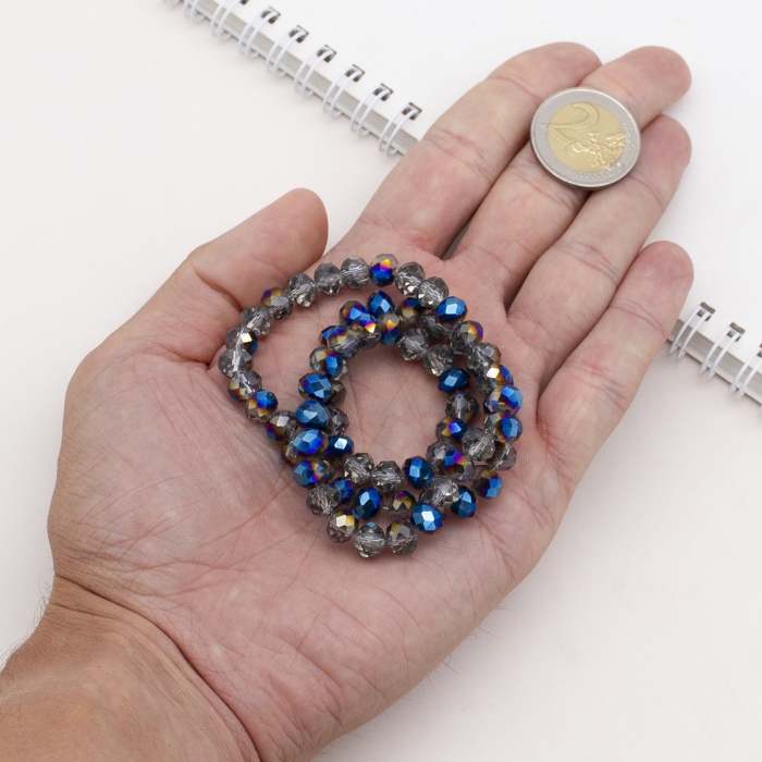 Бусины Гальваническое Стекло, Граненые, Полупокрытие, Рондель, Цвет: Синий, Размер: 8х6мм, Отв-тие: 1мм, ок. 65шт/40см/нить (УТ100029653)
