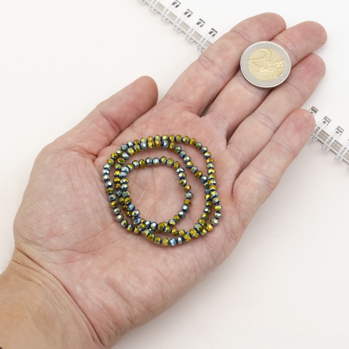 Бусины Гальваника Стекло, Зеленое Покрытие, Граненые, Рондель, Размер: 4х3мм, Отв-тие 0.4мм, около 115шт/40см/нить. (УТ100029672) - ᐈ заказывайте в Москве оптом и в розницу ✅Скидки ✅Акции ✅Распродажи ᐈ доставка по всей России ᐈ Интернет-магазин Мир Бусин