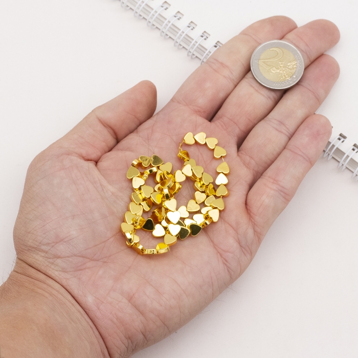 Бусины Синтетический Гематит, Немагнитный, На нитях, Гальваника, Сердце, Позолота, 5х6х2мм, Отв. 1мм, около 80шт/40.5см/нить, (УТ100029813) - ᐈ заказывайте в Москве оптом и в розницу ✅Скидки ✅Акции ✅Распродажи ᐈ доставка по всей России ᐈ Интернет-магазин Мир Бусин