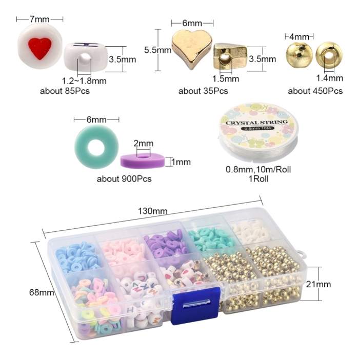 Набор Бусин для Создания Браслетов и Украшений, Микс, 13х6.8х2.1см, 1470шт/набор, (УТ100029846)