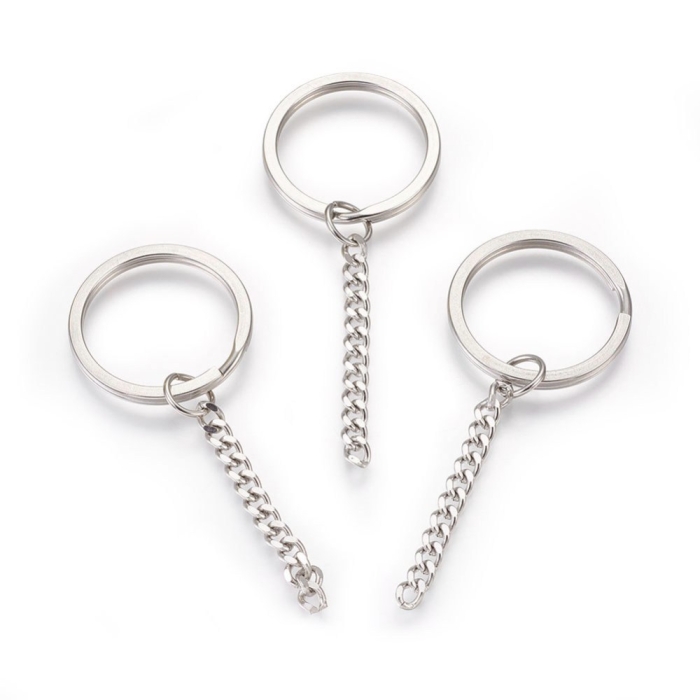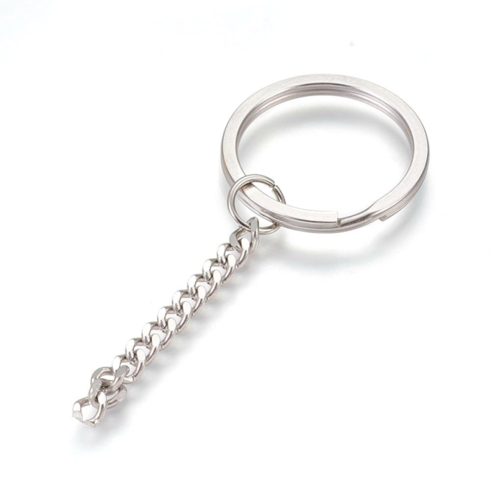 Кольцо Замочек с Цепочкой для Брелоков и Ключей Нержавеющая Сталь, Длина 75мм, Кольцо 30х2.5мм, Звено 5.5x4.5х2мм, (УТ100029887) - ᐈ заказывайте в Москве оптом и в розницу ✅Скидки ✅Акции ✅Распродажи ᐈ доставка по всей России ᐈ Интернет-магазин Мир Бусин