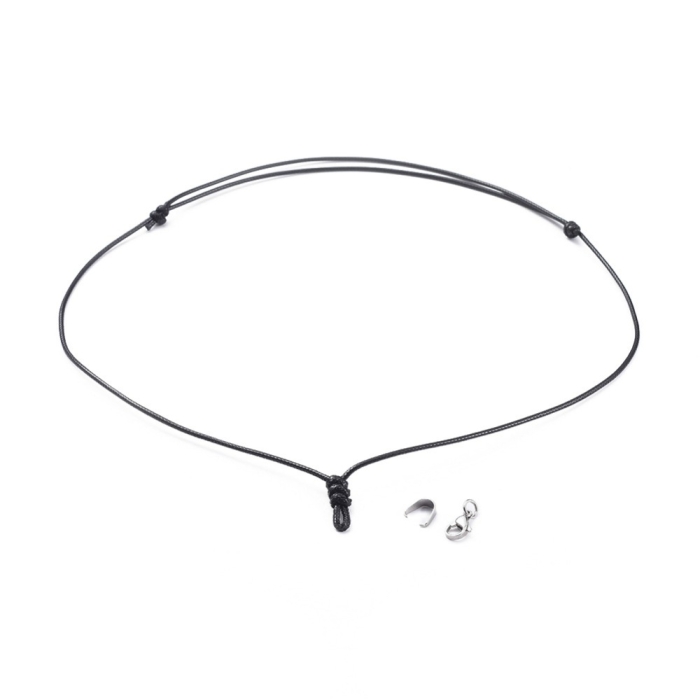 Основа для Ожерелья, Корейский Полиэстеровый Вощеный Шнур с Застежкой Карабин-лобстер и держателем для кулонов из 304 нержавеющей стали, Цвет: Черный.