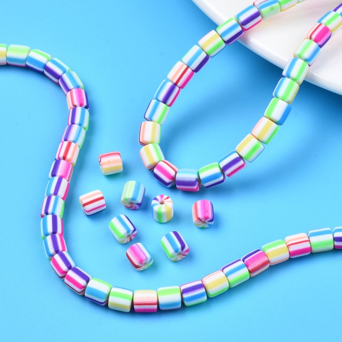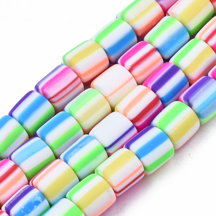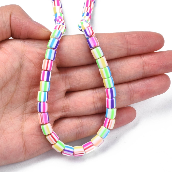 Бусины из Полимерной Глины, Ручная Работа, Колонка, Цвет: Красочный, Размер: 6.5х6мм, Отв-тие 1.2мм, Около 58шт/38см/нить, (УТ100030047)