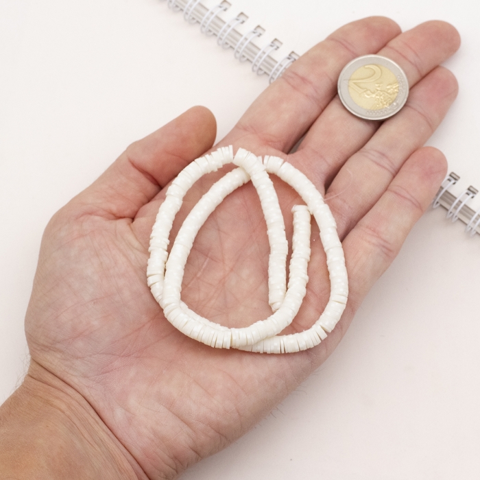 Бусины из Полимерной Глины, Ручная Работа, Круглые Плоские, Цвет: Цветочно-белый, Размер: 6x0.5-1мм, Отверстие 1.8мм, около 300шт/38см/нить, (УТ100030063) - ᐈ заказывайте в Москве оптом и в розницу ✅Скидки ✅Акции ✅Распродажи ᐈ доставка по всей России ᐈ Интернет-магазин Мир Бусин