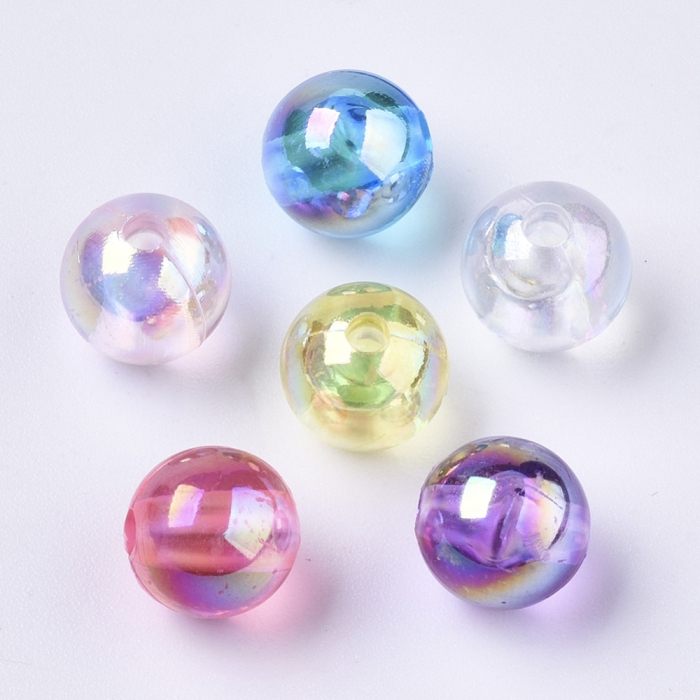 Бусины Акрил, Прозрачные, Круглые, Покрытие АВ цвет,