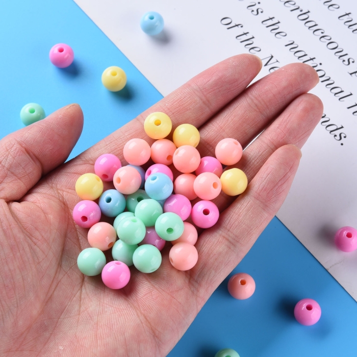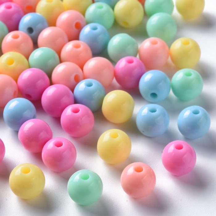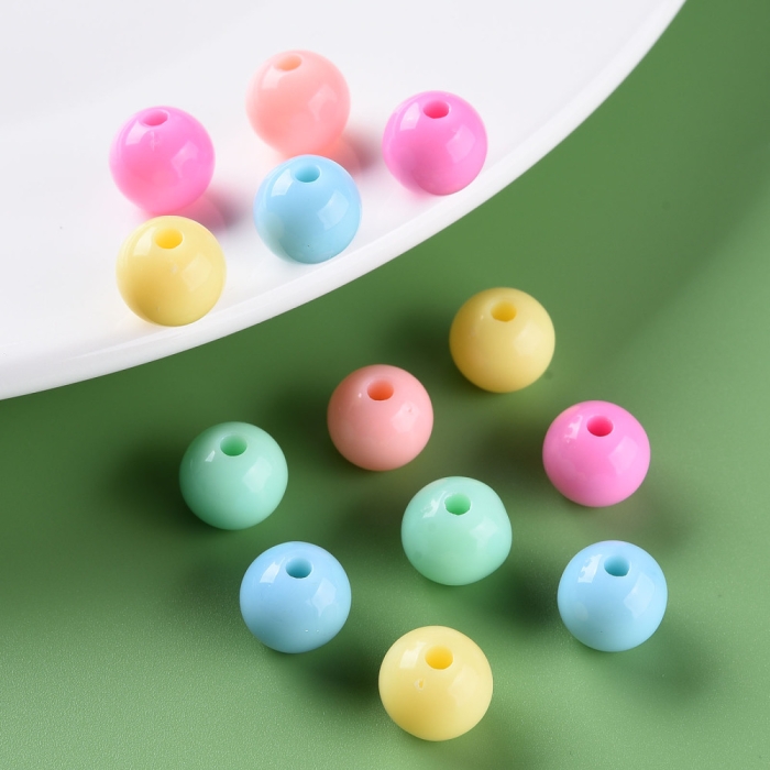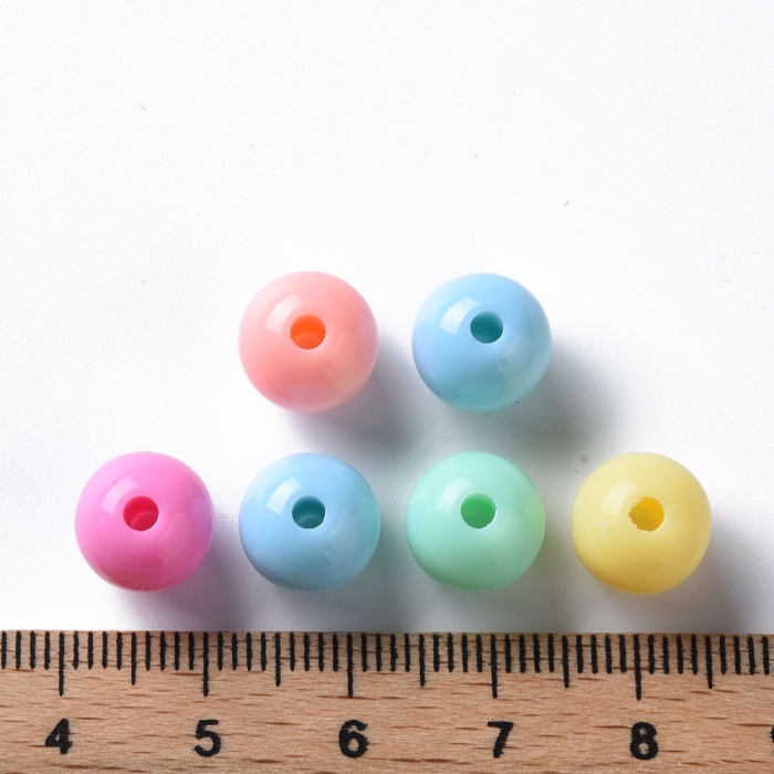 Бусины Акриловые Круглые, Цвет: Белый, Размер: 10х9мм, Отверстие: 2мм, около 90шт/50г, (УТ100029585)