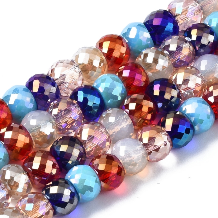 Бусины Гальваника Стекло АВ-Цвет, Граненые, Круглые, Цвет: Микс, Размер: 8х6мм, Отверстие 1.4мм, около 75шт/45см/нить, (УТ100030301)