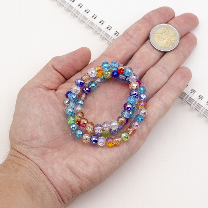 Бусины Гальваника Стекло АВ-Цвет, Граненые, Круглые, Цвет: Микс, Размер: 8х6мм, Отверстие 1.4мм, около 75шт/45см/нить, (УТ100030301) - ᐈ заказывайте в Москве оптом и в розницу ✅Скидки ✅Акции ✅Распродажи ᐈ доставка по всей России ᐈ Интернет-магазин Мир Бусин