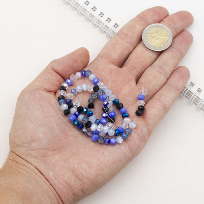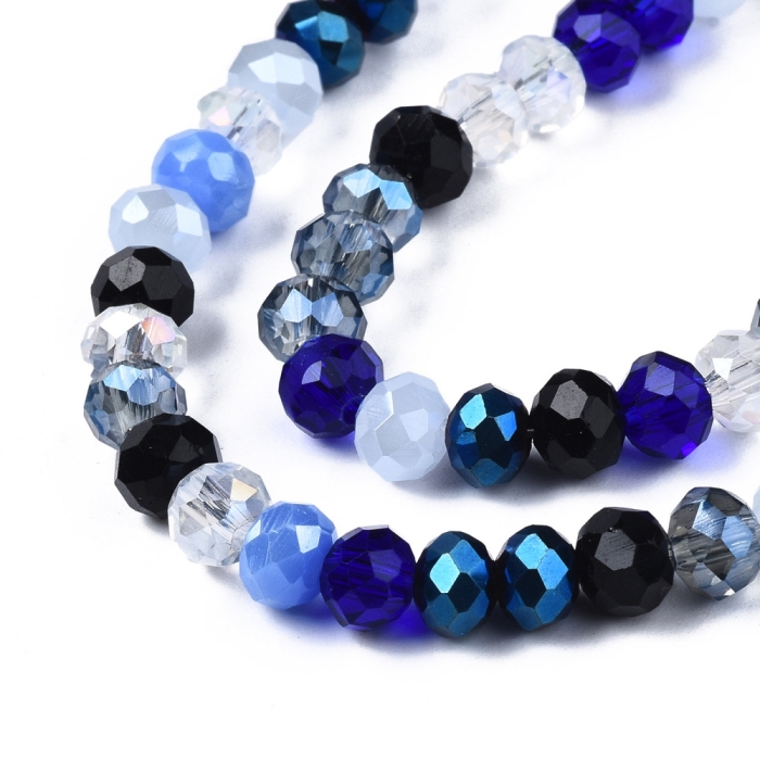 Бусины Гальваника Стекло, Граненые, Рондель, Цвет: Синий, Размер: 5.5-6х5мм, Отверстие 1мм, около 88шт/40см/нить, (УТ100030309)