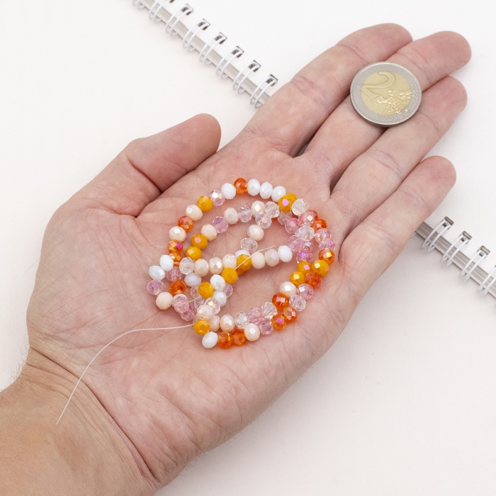 Бусины Гальваника Стекло, Граненые, Рондель, Цвет: Темно-оранжевый, Размер: 5.5-6х5мм, Отверстие 1мм, около 88шт/40см/нить, (УТ100030314) - ᐈ заказывайте в Москве оптом и в розницу ✅Скидки ✅Акции ✅Распродажи ᐈ доставка по всей России ᐈ Интернет-магазин Мир Бусин